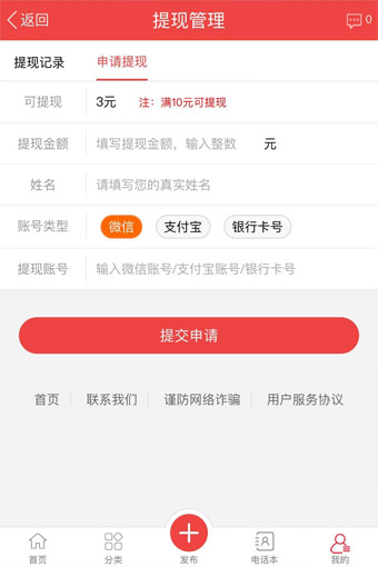 輸入提現(xiàn)金額,提現(xiàn)人姓名,收款賬號類型