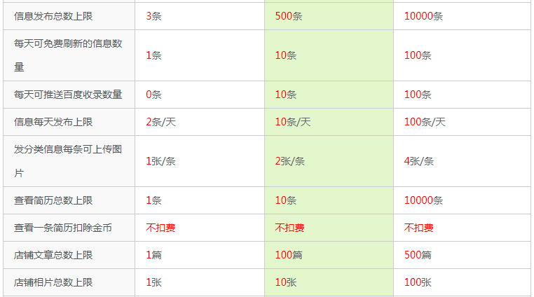 會員后臺首頁不同會員組權(quán)限表格采用深顏色以清晰區(qū)分,顯示更直觀