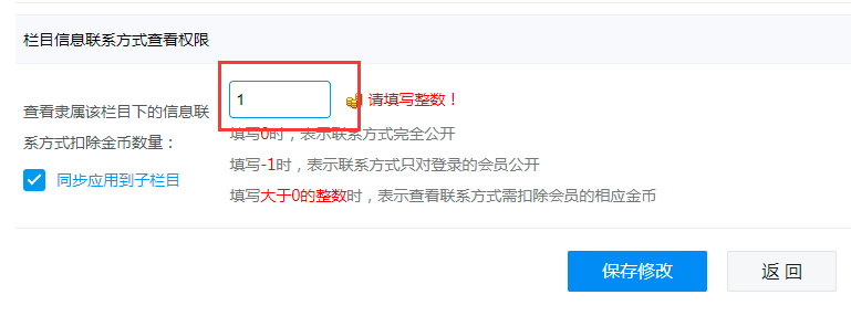 后臺-》分類-》信息分類-》編輯您想設置收費查看信息的分類,如圖所示: